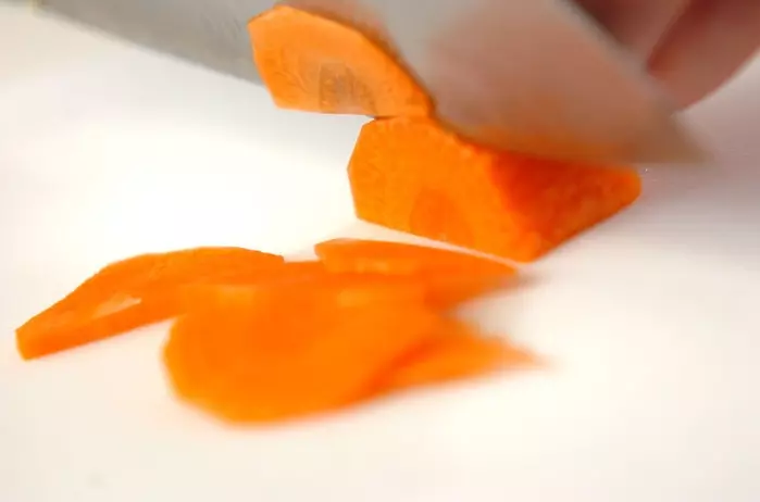 ・ニンジンは皮をむいて薄めの半月切りにし、耐熱皿に並べてラップをかけ、電子レンジで1分加熱する。