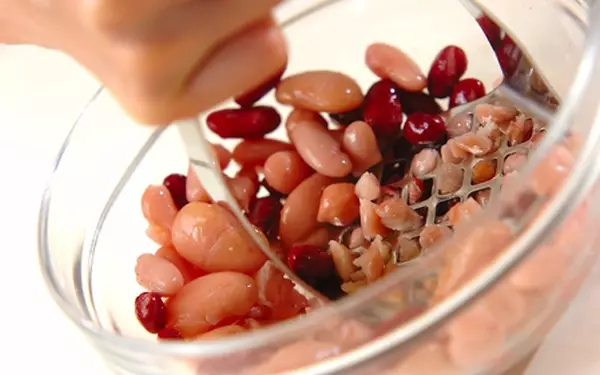 ・ミックスビーンズはザルに上げ、汁気をよくきる。