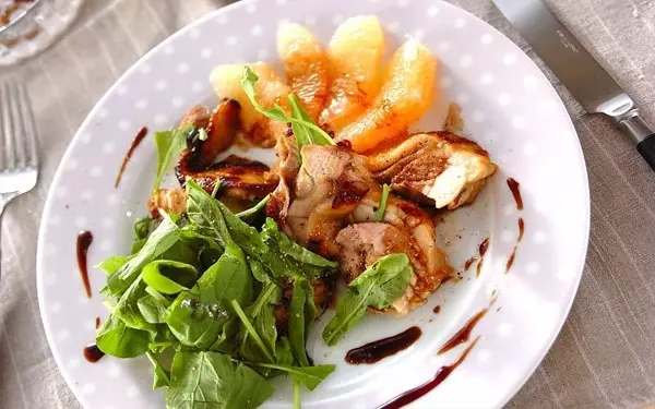 フレンチレストランのメニューなどではよく見る、肉料理と柑橘フルーツの組み合わせ。