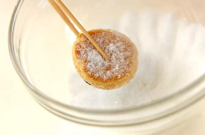 2、熱いうちにグラニュー糖を全体にまぶし、器に盛る。