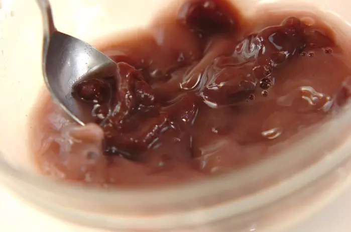 ・こしあんに冷水を加えて混ぜ合わせ、冷蔵庫で冷やす。