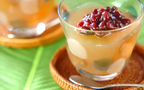 そんなときにおすすめなのが、ハチミツでほんのり甘みをつけた「麦茶」がベースの寒天に、ゆで小豆をのせた涼しげなデザートです。