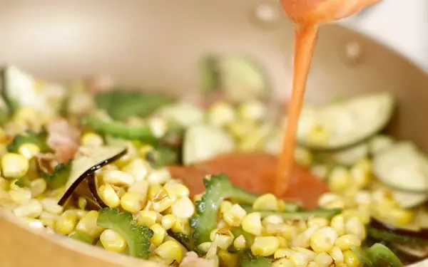 爽やかな苦みがたまらない! 「ゴーヤとトウモロコシの炒めもの」