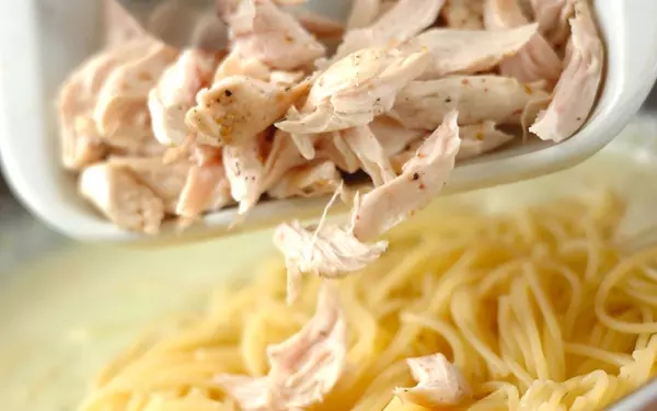 5、(3)に(4)と鶏ささ身を加えてザッとからめ、器に盛る。