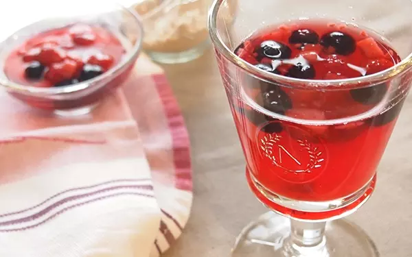 リンゴ酢をベースにフルーツを漬けこんで、簡単にフルーツビネガーを作ることができます。基本的な材料はリンゴ酢、お砂糖、またはハチミツ、お好みのフルーツだけ!今回は、冷凍ベリーミックス(ラズベリーとブルーベリー)を使って、フルーツビネガードリンクを作ってみましょう。フルーティーな香りが美味しいさわやかなドリンクです。