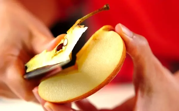 リンゴは分量外の塩でこすり洗いし、ヘタと芯を切り落としてひとくち大に切る。