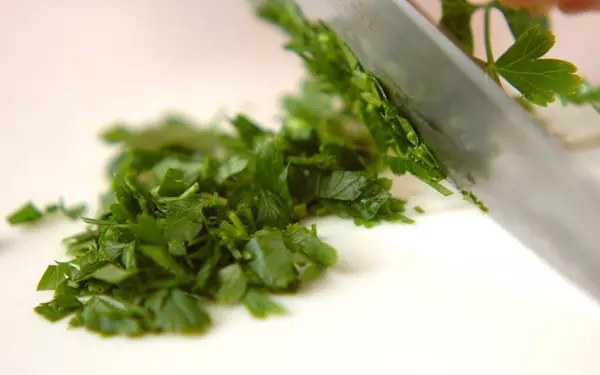 2、イタリアンパセリはみじん切りにする。
