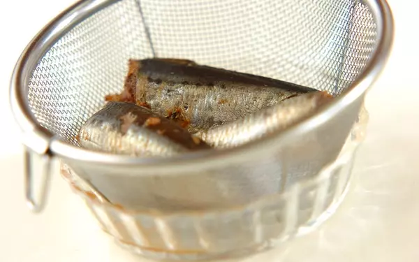 1、イワシ缶の汁気をきる。プチトマトはヘタを取り、縦に4等分にスライスする。