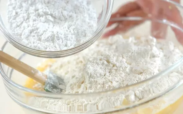 2、ホットケーキミックス、米粉を加え、粉っぽさがなくなるまで混ぜ合わせる。