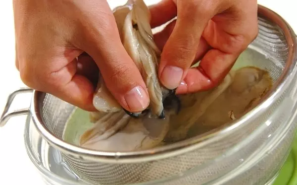 1、カキはよく水洗いし、ペーパータオルで水気を拭く。ニンニクはみじん切りにする。