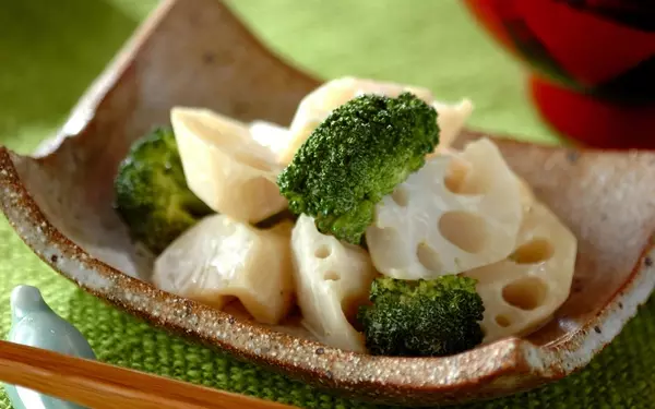 作り方はとってもかんたん。レンコンとブロッコリーを、お手製ユズマヨとあえるだけ。ユズコショウの風味がレンコンとよく合います。緑と白の爽やかな色合いも美しく、食卓を彩ってくれるでしょう。
