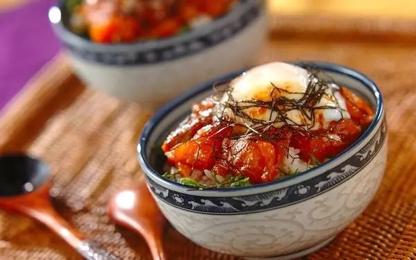 ピリ辛こくウマ&温玉のせ! サーモンの韓国風漬け丼
