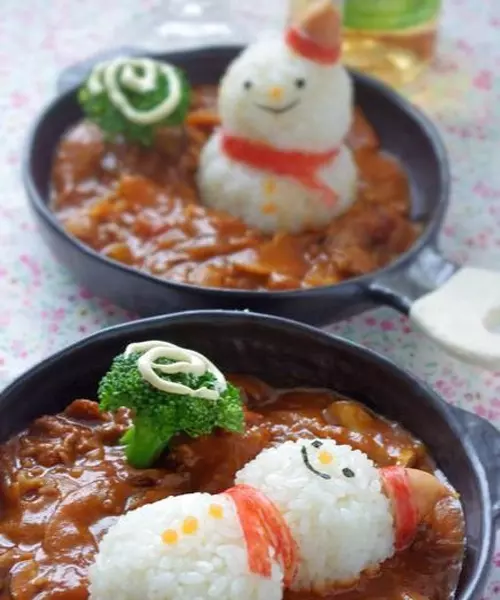 いつものごはんやおかずをほんのひと手間かけるだけで、かわいいクリスマスのデコごはんにするにはどんなアイディアがあるのでしょう。ささっと簡単に作れて、子どもたちが「わ~、かわいい!」「やったー!」とテンションが上がるデコごはんテクを教えてくれるのは、料理家の高羽ゆきさん。いつものごはんを雪だるまのサンタに見たてて、こんなかわいいハヤシライスを作ってみたそうです。