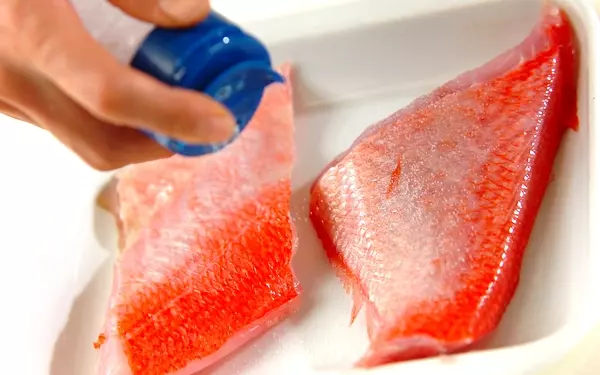 ・金目鯛に塩を振り、5~10分置いて水気を拭き取る。
