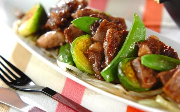 彩りのきれいな芽キャベツとスナップエンドウを一緒に盛りつければ、見た目にも華やかな料理の完成。ごはんにも合う味付けなので、ステーキ丼にするのもおすすめです。