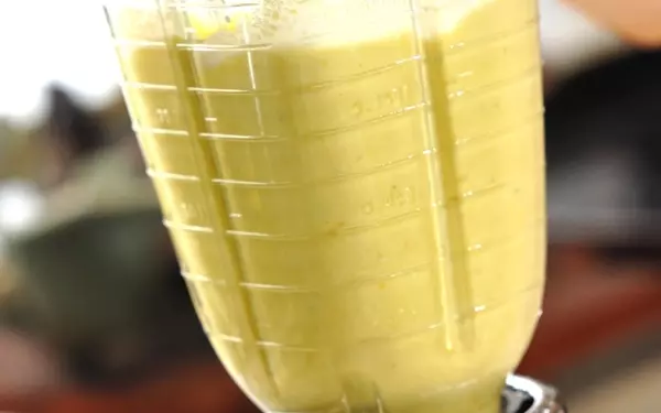 1、カボチャとクリームチーズ、グラニュー糖、牛乳、コーンスターチを合わせてミキサーにかけ、なめらかになったら鍋に移す。