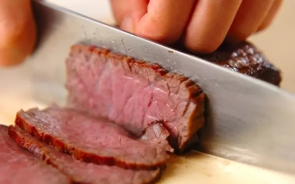 1、魚焼きグリルを予熱する。サラダ油をぬって牛もも肉をのせ、10分加熱して火を消す。アルミホイルに包んでグリルに戻し、30分ほど置く。食べやすい大きさに切る。