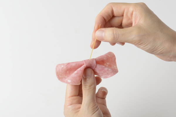 切っていないハムを中心にひだを寄せるようにしてつまむ。