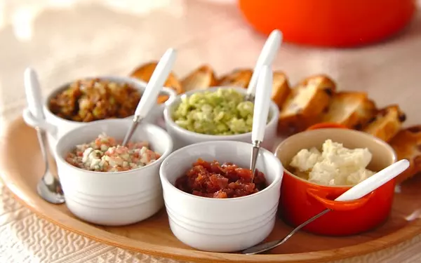 可愛い容器に小分けにして、パンやクラッカーと盛り合わせてテーブルに。何種類か事前に用意しておくだけで、一気にパーティー気分が盛り上がるタルタルやディップ。