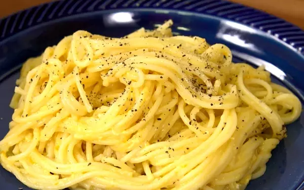 3、ボウルに卵を溶き入れ、粉チーズ、塩を加えて混ぜ合わせる。鍋に加えて蓋をして2~3分蒸らした後かき混ぜる。卵がクリーム状になったらお皿に移してコショウをかける。