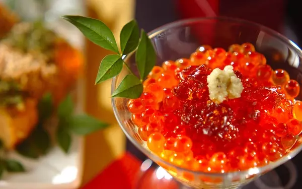 普段の食卓でもお馴染みの豆腐とアボカドを混ぜ合わせ、イクラのしょうゆ漬けをのせ、麺つゆ味のゼリーで飾りつけ。あっという間につくれてしまうのに、見た目はゴージャス!