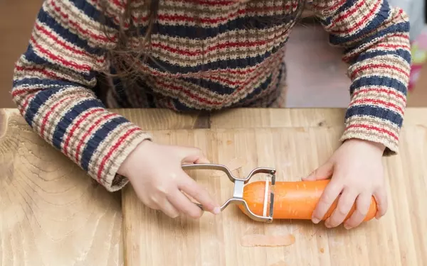 そこで、子どもにお手伝いしてもらうなら、包丁ではなく「ピーラー」を使った野菜メニューがおすすめ。子ども用のピーラーも販売されているので、初めて持たせる場合でも安心です。きちんと食卓を彩る一品を作ってくれますよ。