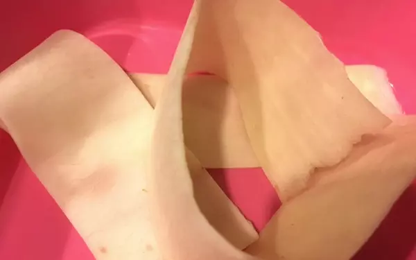 1、大根の皮を用意する。(レシピでは輪切り1週分の皮を1枚とカウント)
