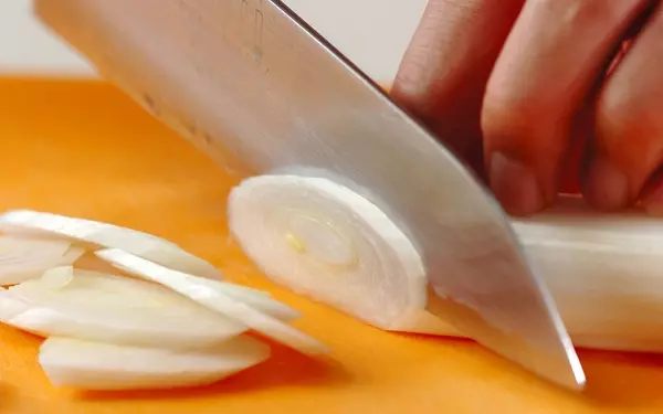 2、鍋にだし汁、カレーを入れて火にかけ、煮たったら白ネギを加えて火を通す。
