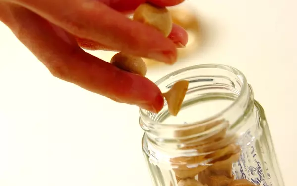 5、瓶に乾燥材と一緒に入れます。柄が素敵なマスキングテープにメッセージを書いて、蓋に貼っておしゃれに封をします。