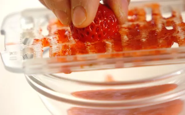 ・イチゴはヘタを上にしてすりおろし器ですりおろす。