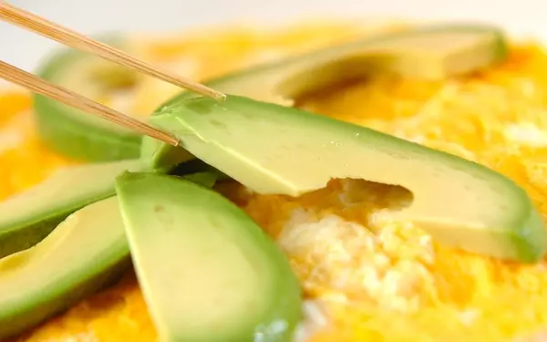 ・アボカドは皮をむいて幅5mmに切り、レモン汁をかける。