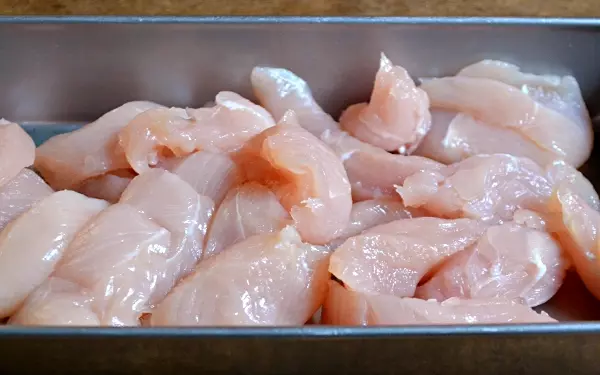4、鶏ささみ肉にほぼ火が通ったらしょうゆを加えて火を止める。