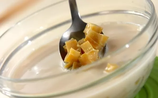 ・干し芋を細かく刻み、アーモンドミルクに1時間程度浸してふやかす。