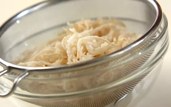 1、切干し大根はたっぷりの水で柔らかくもどし、水気を絞る。
