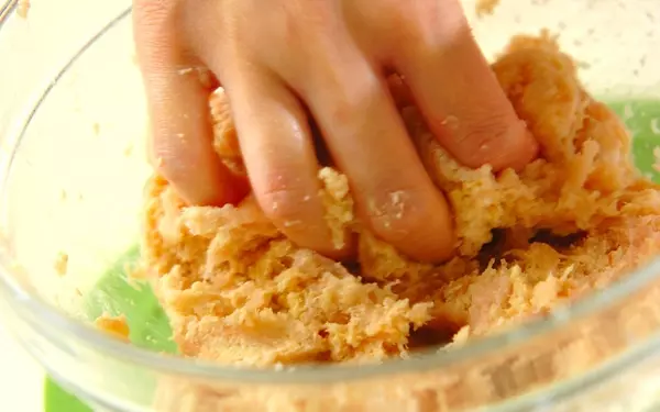 1、ボウルに揚げ油とケチャップ以外の全ての材料を入れ、手で混ぜる。