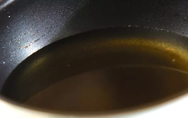 2、フライパンに2~3cm程度の揚げ油を入れ、180℃に温める。
