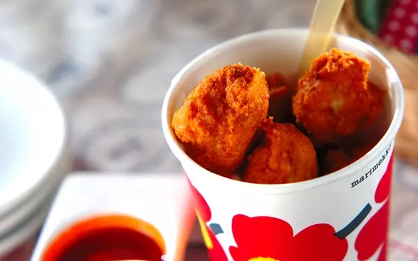 唐揚げというより、チキンナゲットに近い感覚で、子どもたちの大好物! ケチャップのほかにも、マスタードなどお好みのソースで楽しんでみてください。