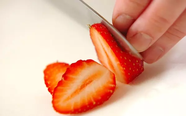 ・イチゴはヘタを切り落とし、縦薄切りにする。