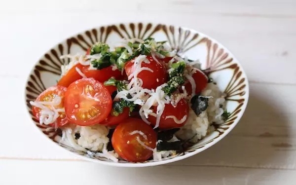 今回はこれからの時期にオススメ、トマトを切ってシラスと和えるだけで火を使わずに作れる簡単どんぶりをご紹介します。