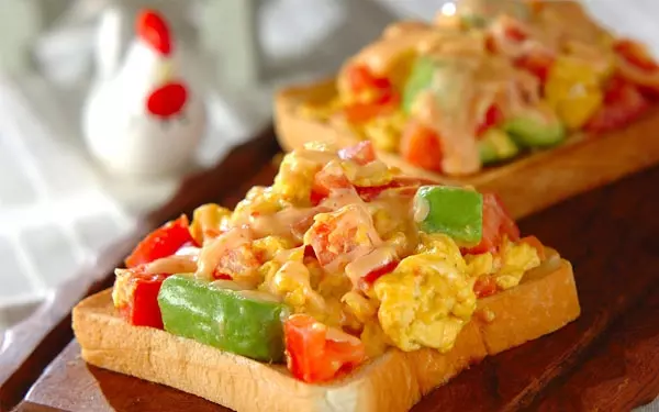 彩りあざやか、ボリューム満点! アボトマ卵トースト