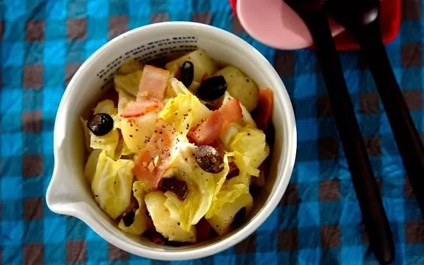 寒い時期だけでなく、暑いときこそ、実はホットサラダがおすすめ。キャベツやベーコンにジャガイモ、そしてアンチョビでアクセントをつけたこのサラダなら、プラスもう一品のサイドメニューにも、お酒のおつまみにも最適。