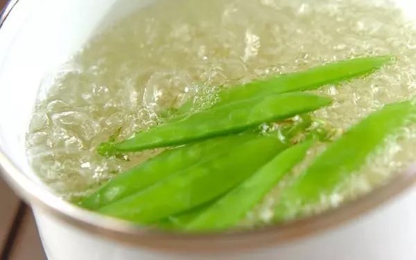 ・キヌサヤは筋を引き、分量外の塩を入れた熱湯でサッとゆでて水に放ち、水気を拭き取る。