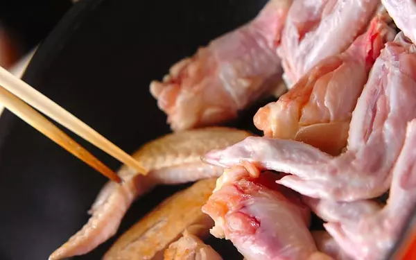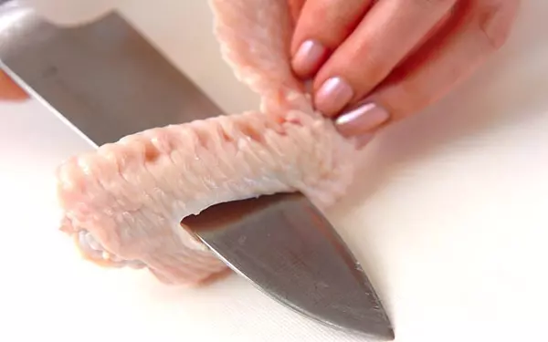 ・鶏手羽先、鶏手羽元は火が通りやすいように骨の際に切り込みを入れる。