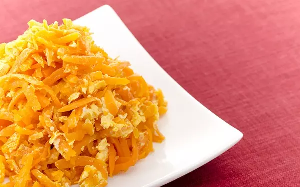 にんじんの千切りを卵と一緒にいためると、沖縄の郷土料理「にんじんしりしり」になります。塩だけのシンプルな味付けで、にんじんの甘さを存分に堪能できるメニューです。