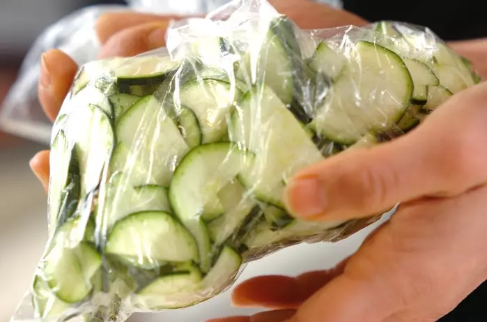 きゅうりではなくかぼちゃの仲間であるズッキーニですが、今回ばかりはきゅうりの漬物を作るイメージで薄くスライスをしてください。