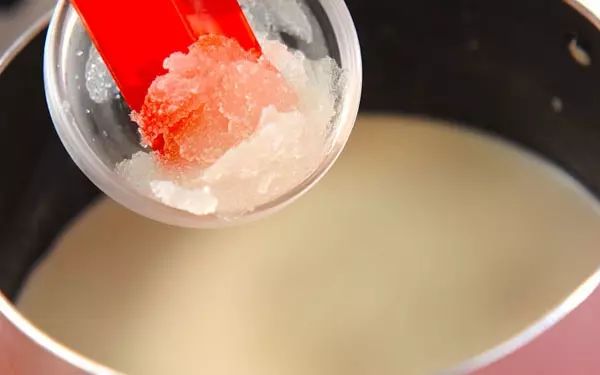 3、ふやかしたゼラチン、バニラエッセンスを加えて余熱で溶かす。