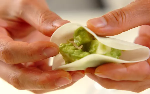 角切りにしたチーズの角で餃子の皮に穴をあけてします場合もあります。具材のつめすぎには注意し、やさしく包みましょう。