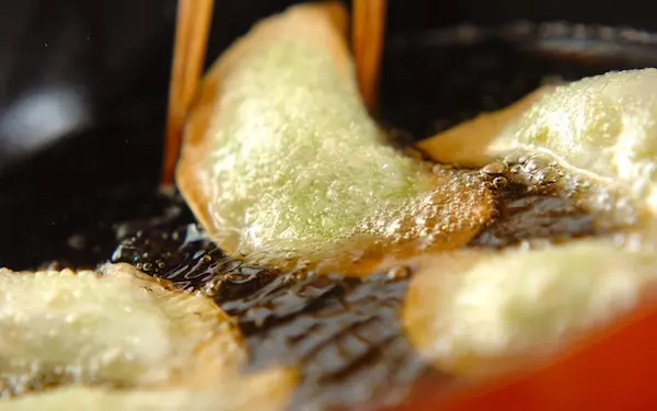 3、170℃の揚げ油に(2)を入れ、色よく揚げて器に盛る。