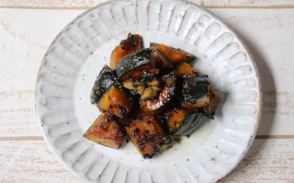 一口大に切ったかぼちゃでも、「揚げない大学芋」と同じように作れます。長いも、大根なども意外にイケるので試してみて!