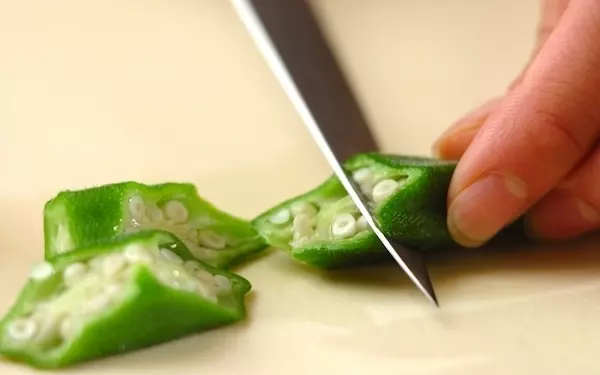 ・オクラはヘタを切り落とし、分量外の塩を入れた熱湯でゆでる。水に取って粗熱が取れたら水気を拭き取り、乱切りにする。